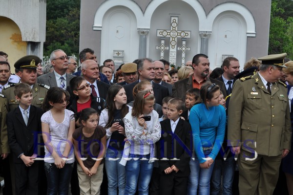 Sute de persoane au participat, joi, la ceremonia organizată în Cimitirul Pacea din Botoşani cu prilejul Zilei Eroilor, marcată, în fiecare an, de Înălţarea Domnului. Persoane publice, dar şi simpli cetăţeani au asistat la slujba de pomenire a eroilor, care a fost urmată de depunerea de coroane şi defilarea militarilor de la Garnizoana Botoşani, Inspectoratul Judeţean de Jandarmi şi Inspectoratul pentru Situaţii de Urgenţă.