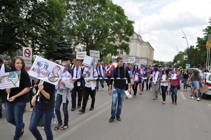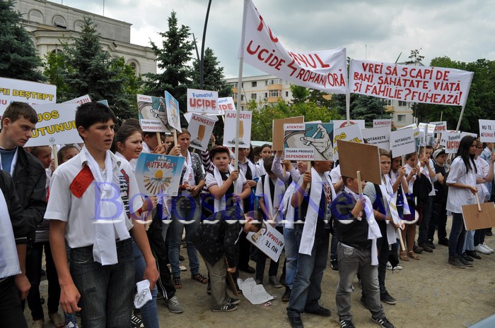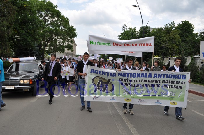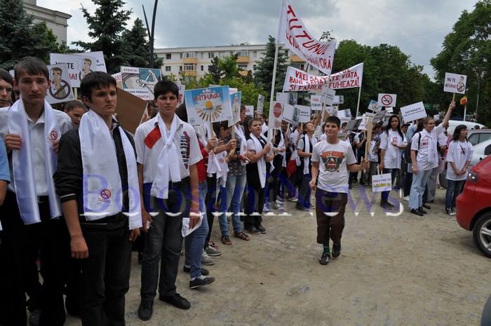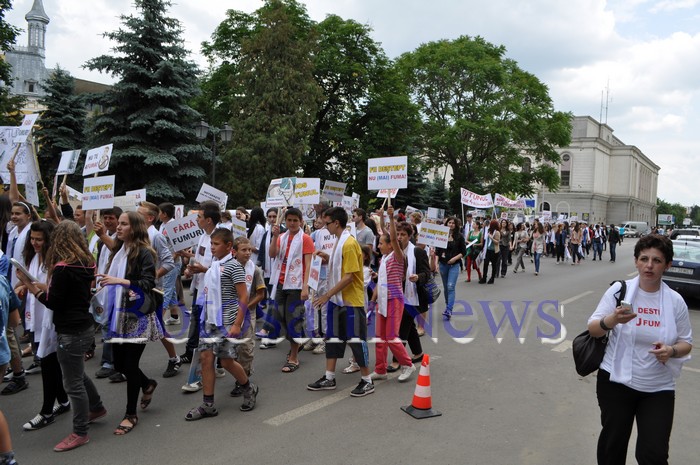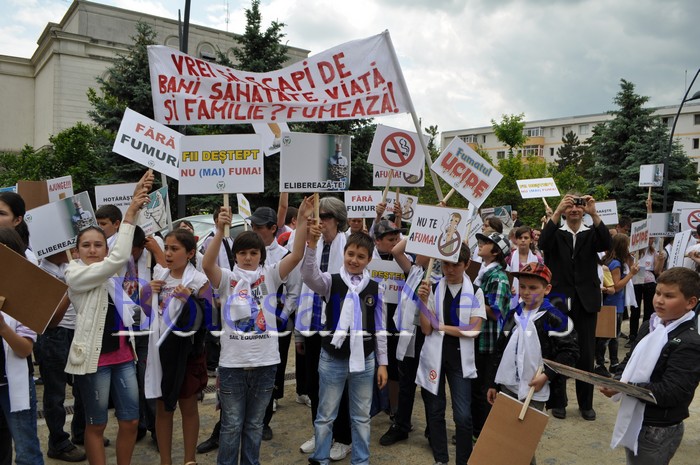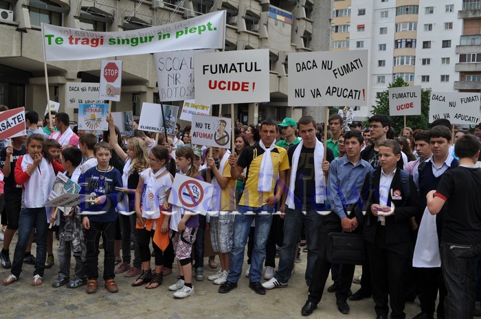mars anti fumat Aproximativ 1.000 de copii din municipiul Botoşani au participat, joi după-amiază, la un marş anti-fumat pe străzile municipiului Botoşani. Copiii au scandat lozinci de genul „Jos tutunul!” şi au fişat bannere şi pancarde cu mesaje care descurajează fumatul.