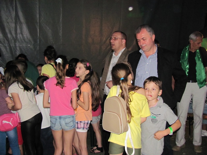 La spectacol a particpat și primarul Catalin Flutur, care a fost luat cu asalt de copii in spatele scenei.