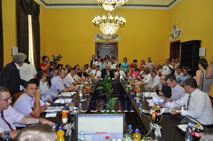În sală s-au aflat şi angajaţi ai Primăriei, directori ai societăţilor subordonate Consiliului Local, dar şi foarte mulţi membri PNL şi PSD.