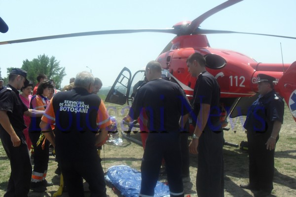 muncitor Metaxa-elicopter SUMURD 00Muncitorul a fost transportat şi  internat pentru scurt timp la Spitalul de Urgenţă Botoşani. Pentru că starea acestuia era gravă, medicii de la Botoşani au decis direcţionarea cazului către Spitalul de Arşi din Bucureşti. Un elicopter SMURD a venit şi l-a luat de pe poligonul ACR.