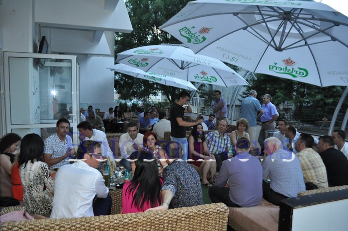 Primarul şi invitaţii săi au stat atât pe terasa clubului Opium (de la Casa Tineretului), cât şi pe canapelele din interior.
