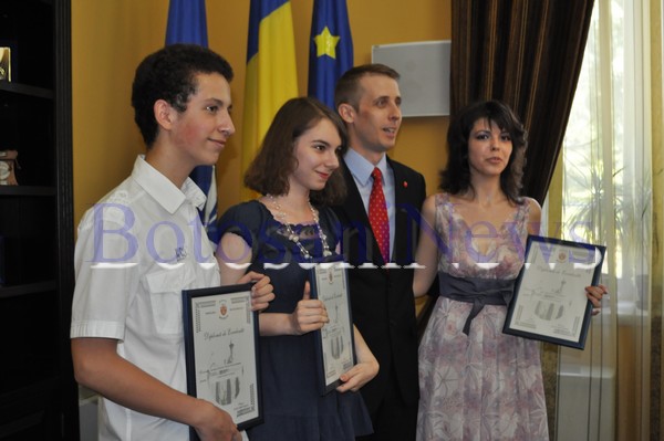 Primarul Ovidiu Portariuc i-a premiat, vineri, pe cei patru mai buni elevi ai municipiului Botoşani. Este vorba de cele două eleve care au luat testarea naţională cu nota zece pe linie, respectiv Ioana Miruna Buză, de la Colegiul Naţional “Mihai Eminescu” şi Laura Aprilescu de la Şcoala 13 Botoşani, dar şi de Adelina Vicol Trişcă, eleva de zece de la bacalaureat. De asemenea, în cadrul aceleiaşi ceremonii a mai fost premiat şi elevul anului, respectiv Cătălin Nicolae Ruxandar.