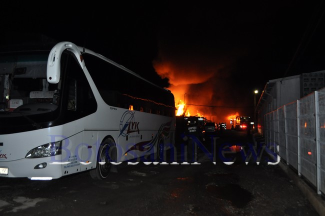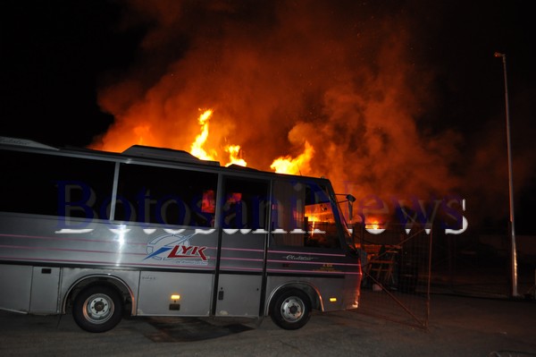 Incendiu devastator, joi dimineaţă, la garajele unei firme de transport din Botoşani. Flăcările au cuprins, în jurul orei 2.00, spaţiile de garare a autobuzelor şi microbuzelor societăţii comerciale Lyk SRL. Flăcările, care se ridicau la peste 10 metri înălţime, au cuprins şi un depozit de materiale plastice din vecinătate.
