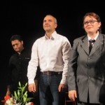 Teatrul Mihai Eminescu și-a deschis, duminică seară, stagiunea cu o festivitate în cadrul căreia au fost premiați foștii directorii ai instituției, foști și actuali primari dar și actori care au jucat pe scena teatrului de -a lungul timpului. Evenimentul a fost ocazionat de cei 100 de ani pe care Teatrul Mihai Eminescu i-a împlinit anul acesta. Elena Coriciuc Ligi, Jean Apostoliu, Ioan Ploieșeanu, Constantin Adam au fost actorii distinși cu diplomă, duminică seară, pe scena teatrului. Tot diplomă au primit și foștii dar și actualii directori Dumitru Arhip, Stelian Preda, Lucia Olaru Nenati, Boris Perevosnic, Marius Rogojinschi, Ioan Bordeianu, Volin Costin și Traian Apetrei. Stelian Preda, fost director al instituției prezent la festivitatea dedicată celor 100 de ani, i-a amintit în discursul său pe celebrii actori care și-au început cariera la Botoșani: Adela Mărculescu, Ion Dichiseanu, Margareta Pogonat, etc. Tot el a spus că își dorește să-și încheie cariera artistică printr-un spectacol pe scena botoșăneană dar în clădirea reabilitată a teatrului. Dintre foștii și actualii primari a fost prezent doar fostul primar Florin Egner. Primarul în funcție Ovidiu Portariuc a lipsit de la ceremonia organizată de teatrul botoșănean în cinstea celor 100 de ani de la prima piatră pusă la temelia clădirii. Au mai fost premiați prieteni ai teatrului care au contribuit, fie sponsorizând teatrul cu diferite ocazii, fie prin implicarea la diferite proiecte. Administratorul public al Primăriei Botoșani, Adriana Zăiceanu a primit de asemenea o diplomă de prieten al teatrului pentru contribuția pe care și-a adus-o la dezvoltarea proiectului de reabilitare a teatrului. Seara s-a încheiat cu prima premieră din aceasta stagiune, respectiv spectacolul „În iad cărțile sunt făcute” de Călin Ciubotari, regia Octavian Jighirgiu. Spectacolul se remarcă printr-un mesaj puternic și extrem de actual fiind chiar un semnal de alarmă față de interesul scăzut acordat cărților. Din distribuţie fac parte actorii : Irina Mititelu, Andreea Moţcu, Lidia Uja, Gina Pătraşcu, Mirela Nistor, Crenola Muncaciu, Ioan Creţescu, Cezar Amitroaei, Sorin Ciofu, Bogdan Muncaciu, Dragoş Radu. Spectacolul a fost bine primit de publicul care a aplaudat minute bune prestația actorilor botoșăneni. Alături de actorii teatrului la acest moment aniversar au fost în public și actorul Daniel Badale dar și câțiva șefi de instituții ca Ioan Diaconu, directorul Modern Calor, Ion Ilie, directorul Centrului de Creație Botoșani, viceprimarul Viorel Iliuță.