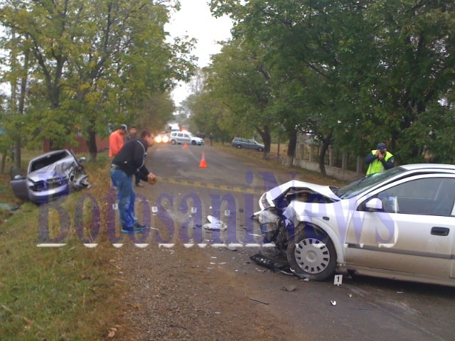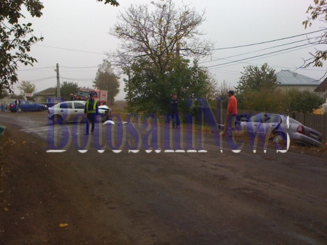 Două maşini s-au ciocnit, luni dimineaţă, pe drumul judeţean Botoşani-Roma, la intrarea în localitatea Roma. Într-o curbă periculoasă la dreapta, un autoturism Opel Astra înmatriculat în Italia a pătruns pe contrasens şi s-a izbit frontal într-un Daewoo Nubira.