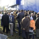 Sute de botoşăneni cu venituri reduse s-au înghesuit, luni dimineaţă, de la ora 9.00, la depozitul Serviciului Public Local de Asistenţă Socială pentru a lua alimentele de la Uniunea Europeană.