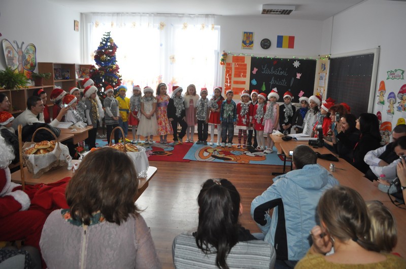 În semn de răsplată, cei 25 de copii, coordonaţi de învăţătoarele Iulia Lupu şi Loredana Ciubotaru, au recitat poezii, au cântat, au colindat, au urat şi au semănat.