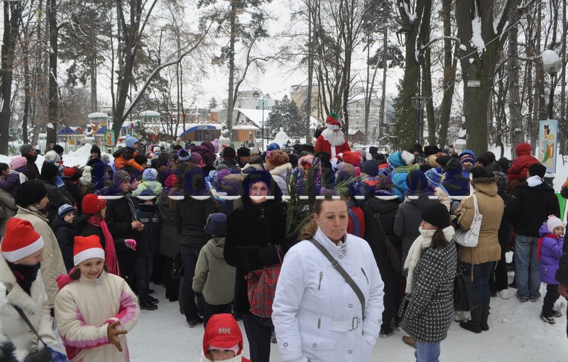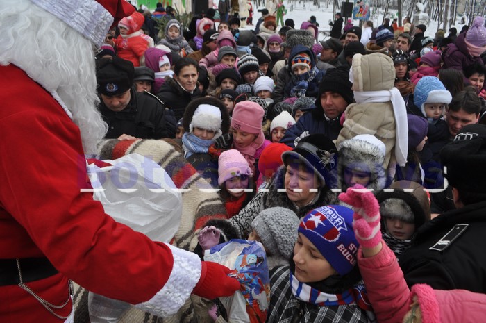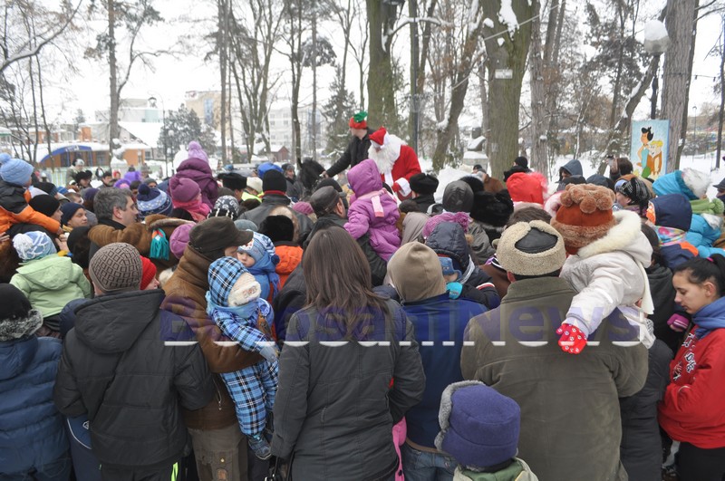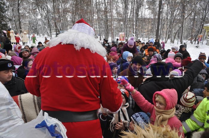 Moş Crăciun, ajutat de angajaţii Primăriei Botoşani, a dăruit punguţe cu dulciuri în fiecare din locurile în care s-a oprit.