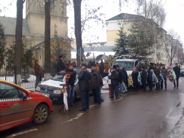 Cortegiul funerar a fost precedat de coroane, dar şi de peste 50 de maşini taxi. Timp de mai bine de o oră, strada Mihail Kogălniceanu a fost blocată, iar circulaţia din zonă a fost dirijată de poliţiştii locali.