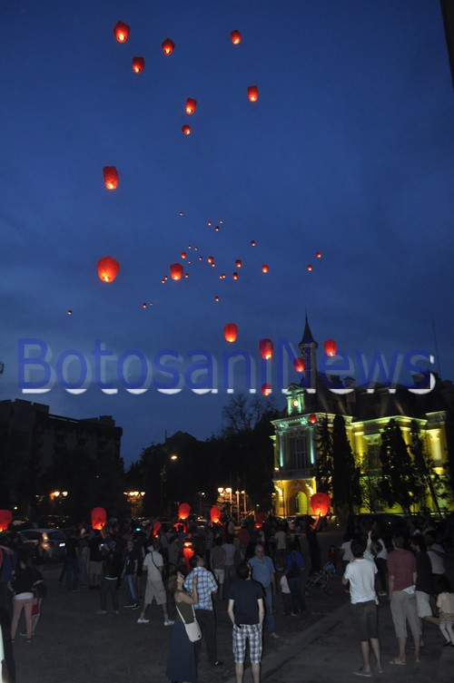 Aproximativ 100 de lampioane au fost lansate, joi seară, din Piaţa Revoluţiei din municipiul Botoşani, cu prilejul Zilei Tineretului. Felinarele au fost oferite publicului în cadrul unei acţiuni organizate de Tineretul Social Democrat.