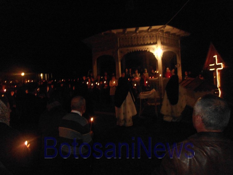 A urmat apoi slujba în aer liber, când preoţi şi credincioşii au înconjurat biserica, iar apoi, în timp ce doar câteva zeci de credincioşi au rămas la slujbă ca să îşi sfinţească şi bucatele pe care le-au adus în coşuri, majoritatea au plect ducând lumină în case.