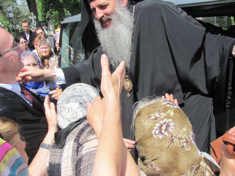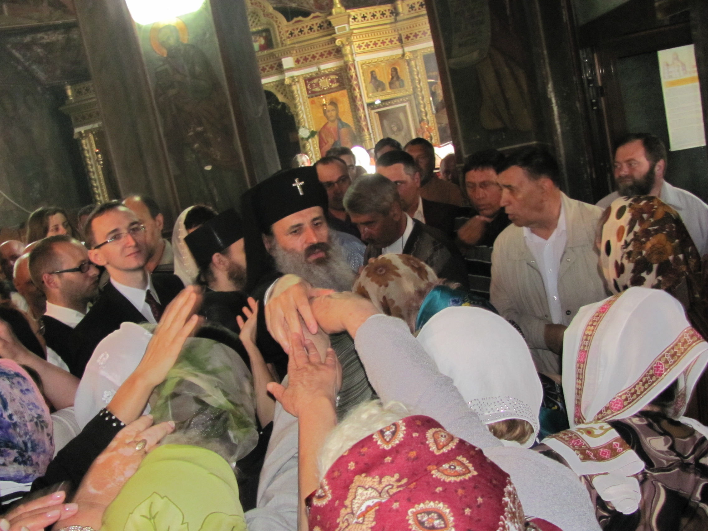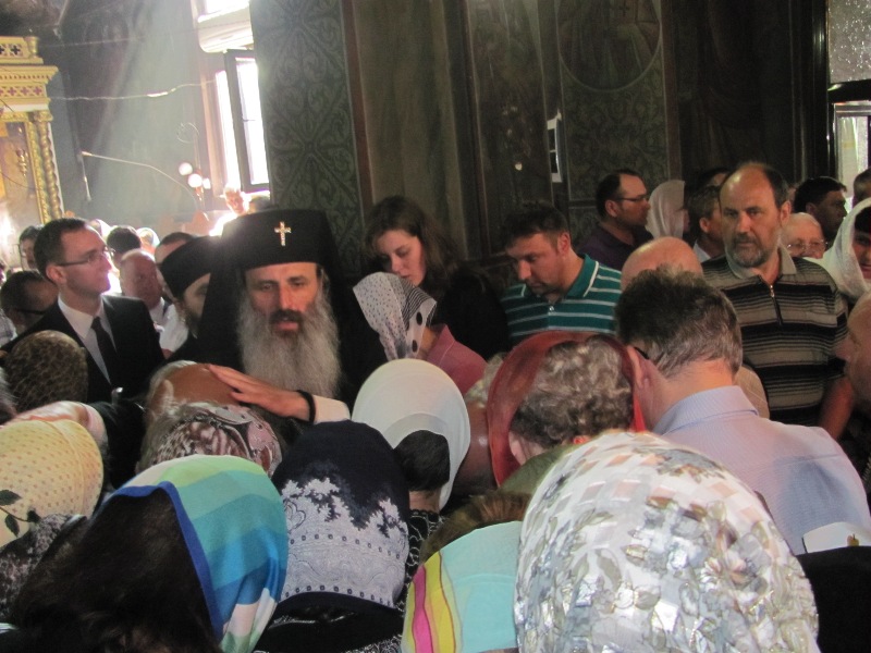 Părintele și-a încheiat cuvântul prin urări de liniște și pace tuturor credincioșilor care l-au urmat până la mașina cu care a venit de la Iași, pentru a primi fiecare binecuvîntarea sa, unii primind-o de mai multe ori, alții întinzîndu-și șepcile ori diferite lucruri personale, pentru a fi atinse de mâna feței religioase.
