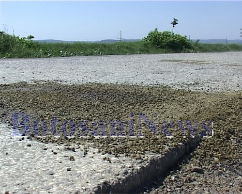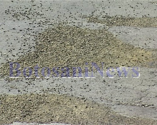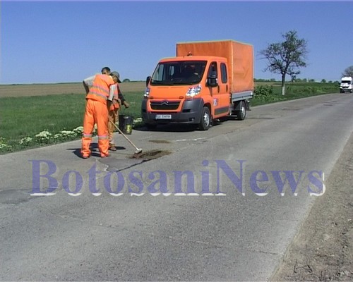 Premieră în Botoşani! Angajaţii secţiei de Drumuri Naţionale au găsit o metodă inedită de a plomba străzile. Nu mai mizează pe nicio mixtură asfaltică, ci astupă craterele, de pe drumul Botoşani-Târgu Frumos, cu nisip simplu.