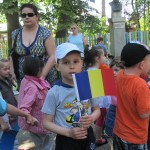 Înarmați cu stegulețele României și ale Europei, cu baloane colorate pe care au scris numele continentului sărbătorit astăzi, dar și purând șepcuțe confecționate din carton cu steagurile unor țări din Europa, copiii au dat startul unui marș al prieteniei între popare.