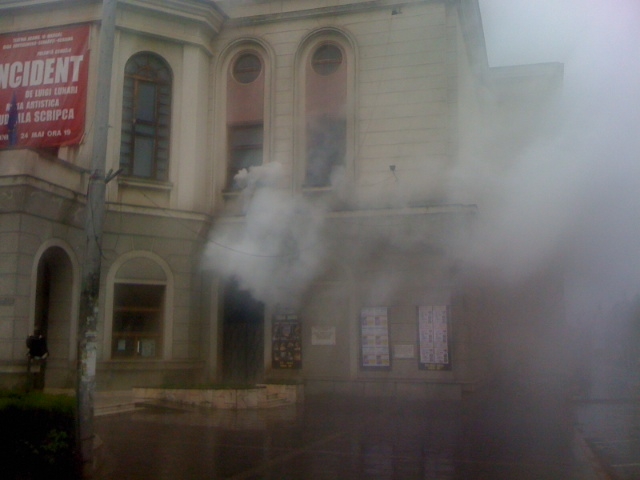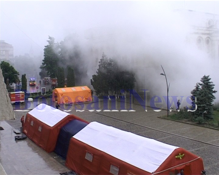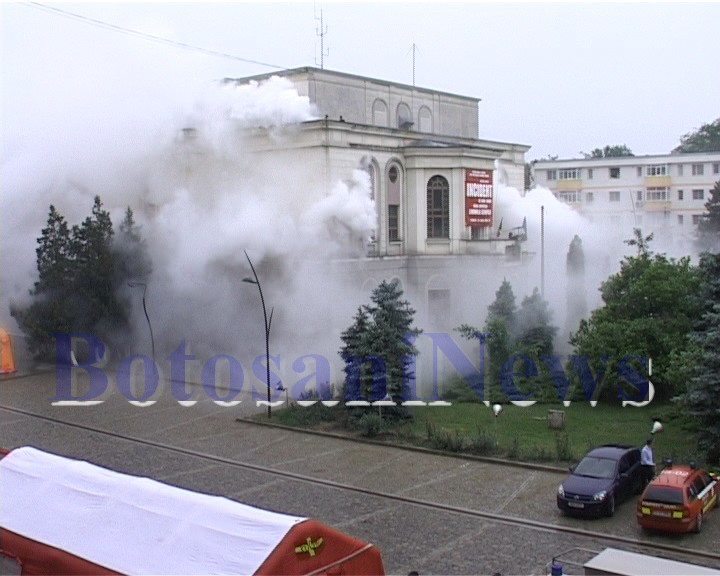 Exerciţiul, care a durat două ore, a constat în simularea unui incendiu izbucnit la una dintre cele mai importante şi aglomerate instituţii din municipiul Botoşani, Teatrul “Mihai Eminescu”, incendiu ce a făcut ca interiorul, dar şi exteriorul clădirii să fie inundat cu fum şi gaze toxice.