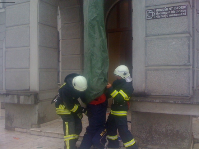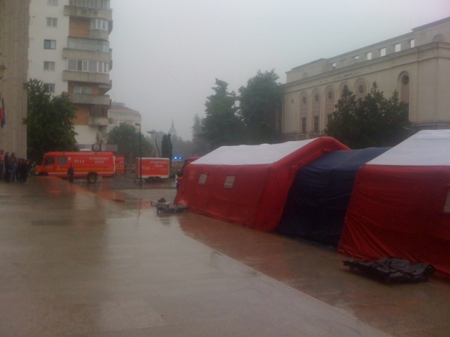 Acest exerciţiu a iscat panică în rândul trecătorilor, care au crezut la început că situaţia este una reală. Zeci de curioşi au stat pe margine, în ciuda ploii torenţiale de afară, pentru a vedea cum sunt evacuate victimele şi cum este lichidat focul.