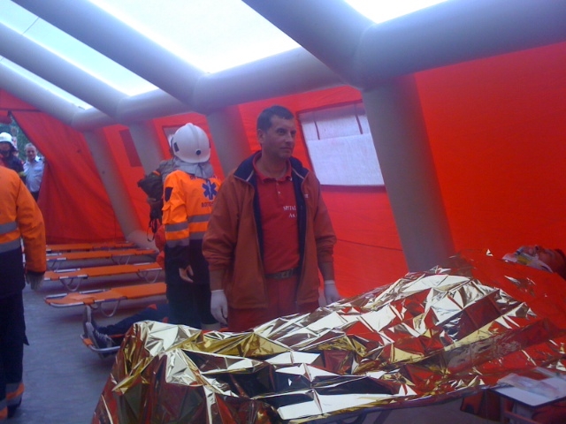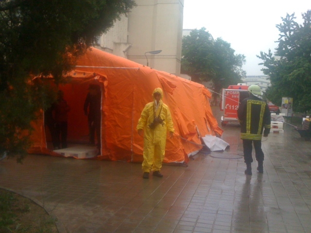 O parte dintre victime au trecut prin cortul de decontaminare, înainte de a ajunge în punctul medical avansat. După executarea triajului, victimele au fost transportate la spital pentru acordarea ajutorului medical de specialitate.