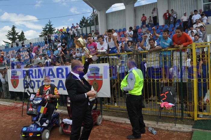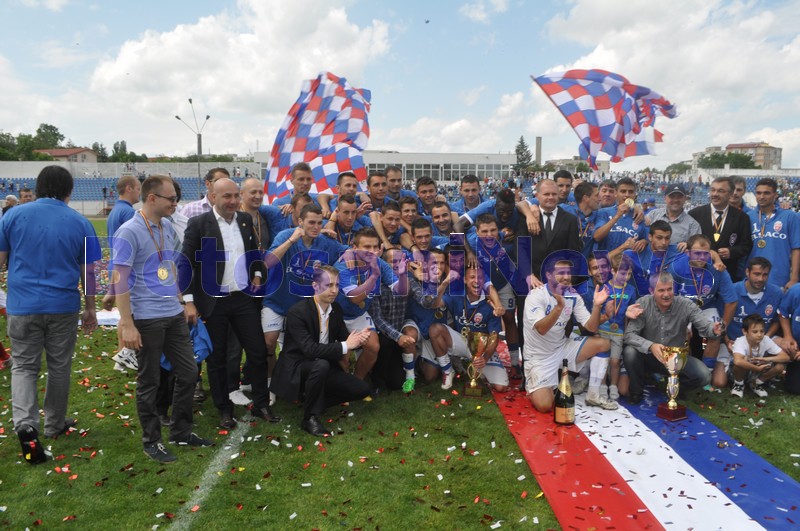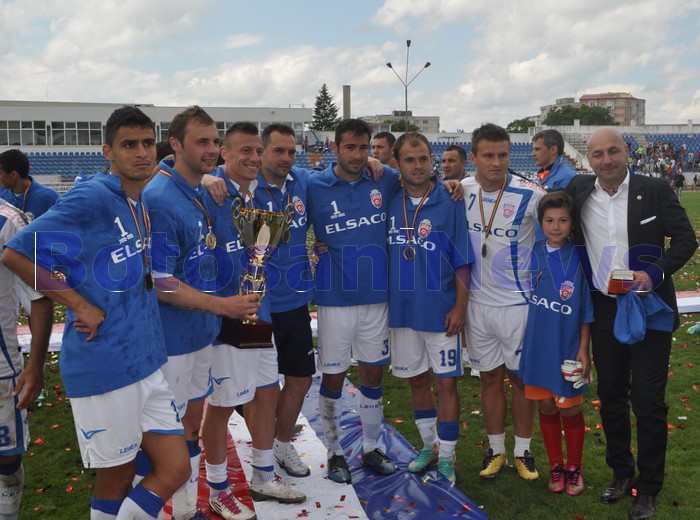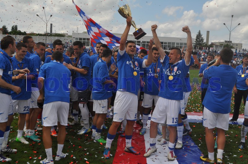 Mii de spectatori au asistat, sâmbătă, pe Stadionul Municipal la un moment istoric pentru Botoşani. Pentru prima dată în istoria fotbalului, judeţul Botoşani are o echipă în prima ligă. Momentul a fost marcat, sâmbătă, la sfârşitul partidei cu CS Otopeni, încheiată cu scorul de 2-0 (1-o), prin înmânarea tricourilor, medaliilor de campioni şi a cupei campionilor seriei I din Liga a doua.