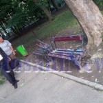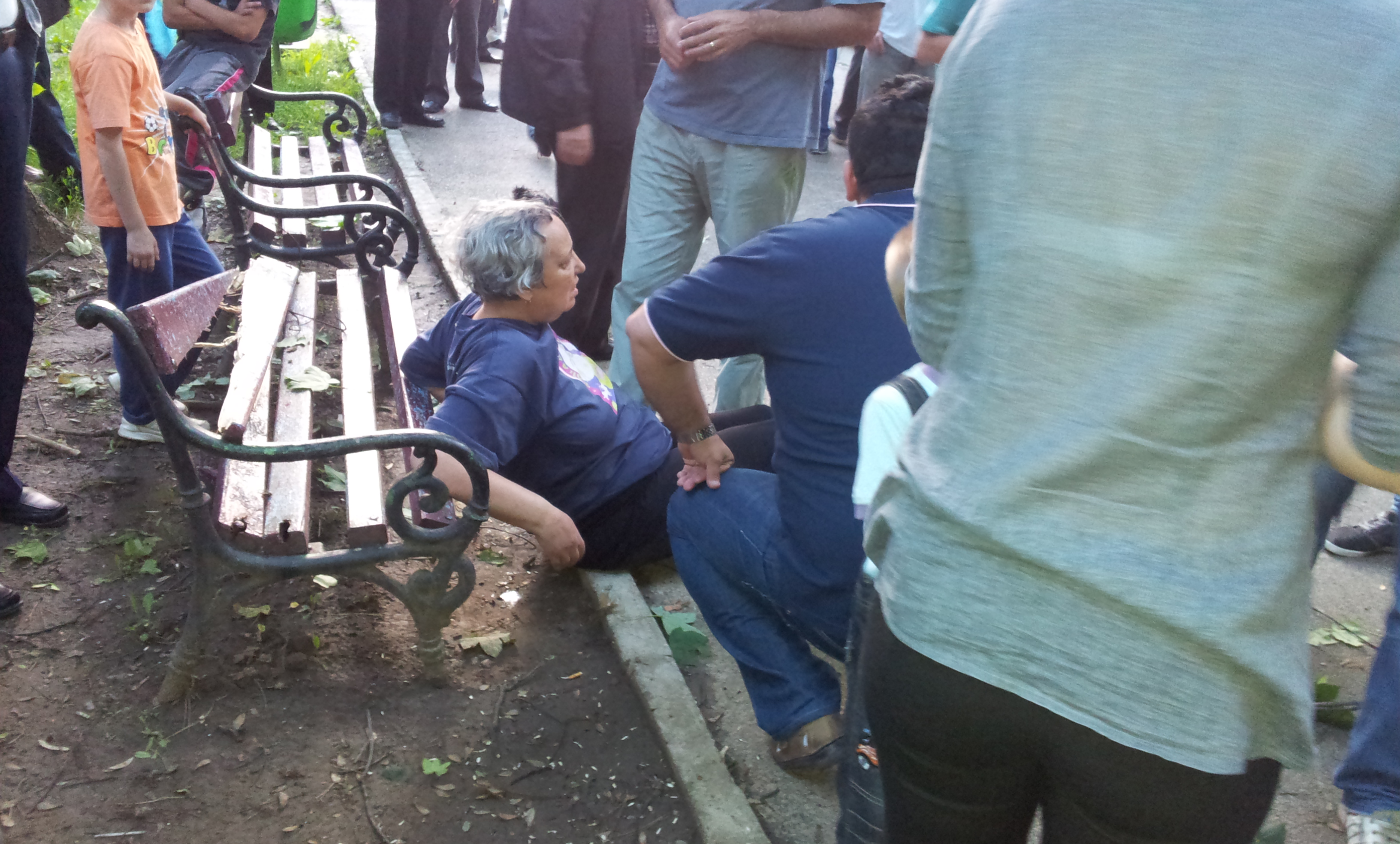 La un moment dat, cei doi s-au aşezat pe o bancă, însă nu au stat mai mult de câteva minute că o creangă dintr-un copac s-a prăbuşit peste ei. Bărbatul a reuşit să se ferească, însă, femeia a fost rănită, iar banca distrusă.