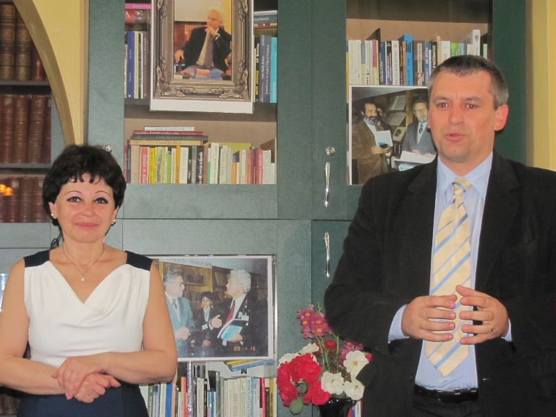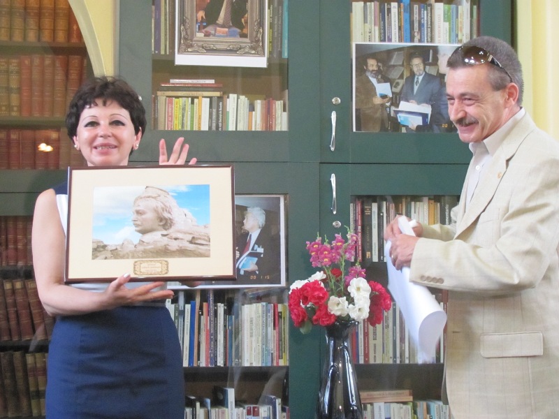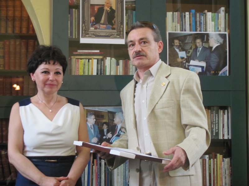 Tot în debutul lucrărilor, medicul Gică Marițanu, membru al Asociatiei Filatelice a judetului Botosani, a făcut un cadou conducerii Bibliotecii, un tablou reprezentând imaginea poetului Mihai Eminescu dar ca Sfinx culturii românești, o grafică realizată chiar de către medicul botoșănean.