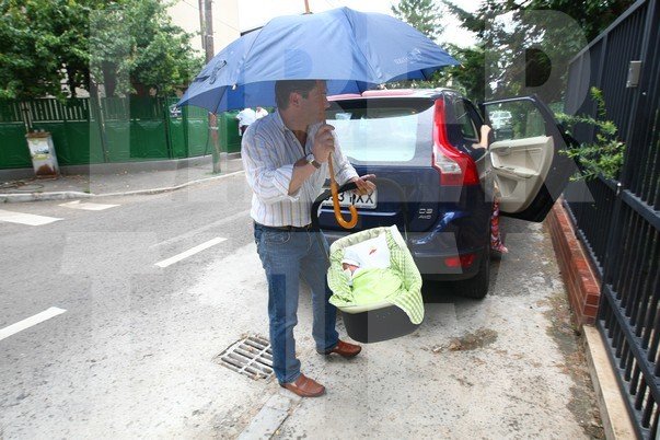 Fostul prezentator al emsiunii ”Din dragoste” a fost surprins de paparazzii Libertatea în momentul în care a oprit în fața casei mașina în care se afla Tudor. Deși afară începuse să picure, Mircea nu părea tulburat de acest lucru, era tot numai un zâmbet și ținea protector umbrela deasupra coșulețului în care se afla copilul, pentru a-l feri de picurii calzi de vară.