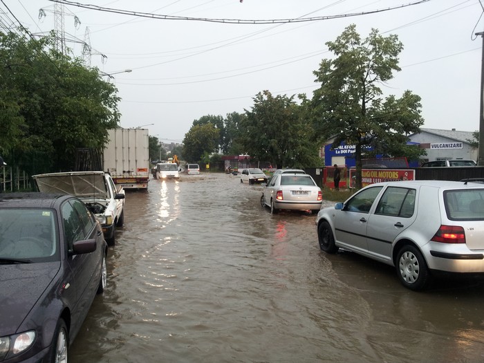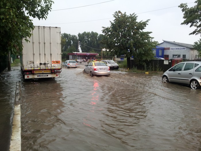 Nu a fost nevoie de intervenţia pompierilor, ploaia fiind preluată prin gurile de canal din zonă.