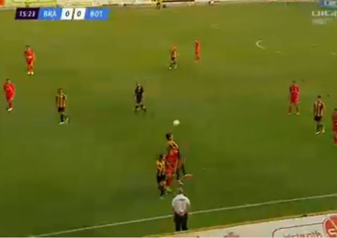 min. 13 centrare Tătar de pe partea dreaptă, iar Santos reia cu capul spre poarta, iar Curileac respinge
