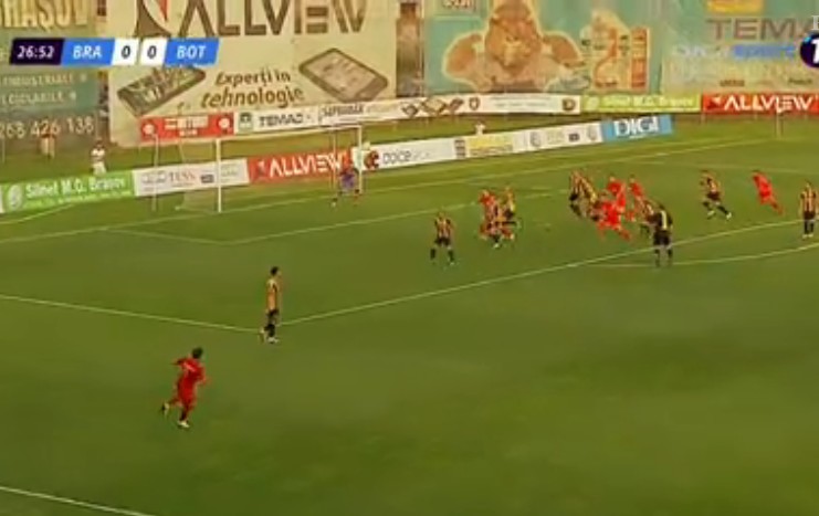 min. 28 fundaşul braşovean, Oltean, pune mâna pe minge la limita propriului careu, însă arbitrul central nu a văzut faza şi nu a acordat nimic în ciuda insistenţelor jucătorilor FC Botoşani