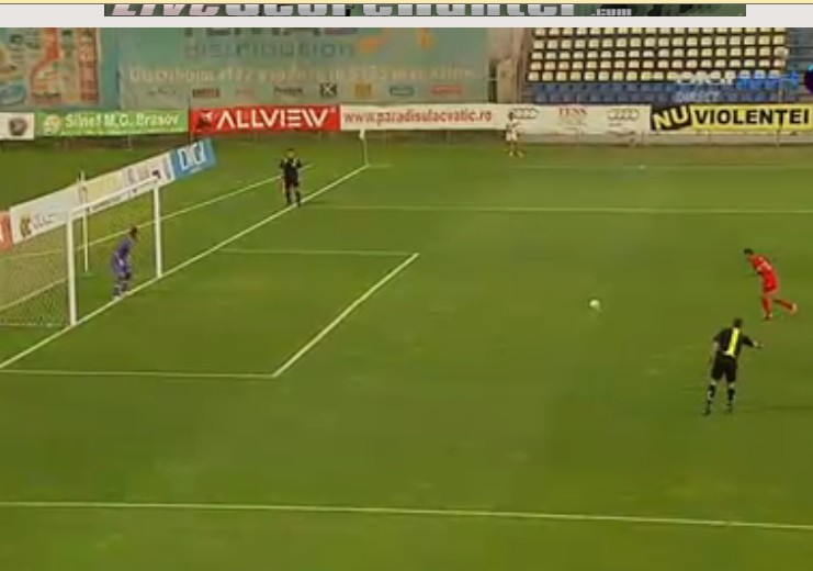 min. 37 Acsinte centrează periculos în careu însă portarul braşovean reţine