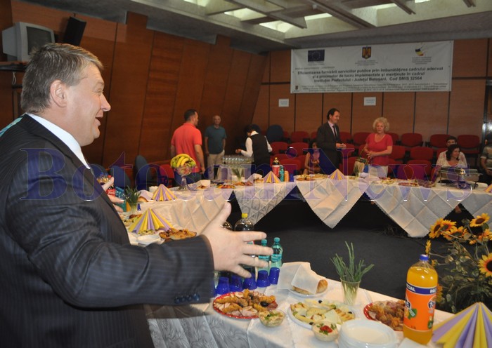 El le-a oferit acestora aperitive, fructe, însă şi băuturi alcoolie şi răcoritoare. Toate au fost pregătite de Pensiunea Andreea, care a adus în sala de şedinţe a CJ şi un dozator de bere.
