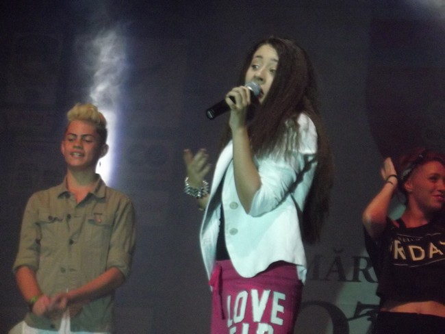 Publicul a cântat împreună cu solista două hituri lansate în această vară. Este vorba de Memories şi Yes I Can.