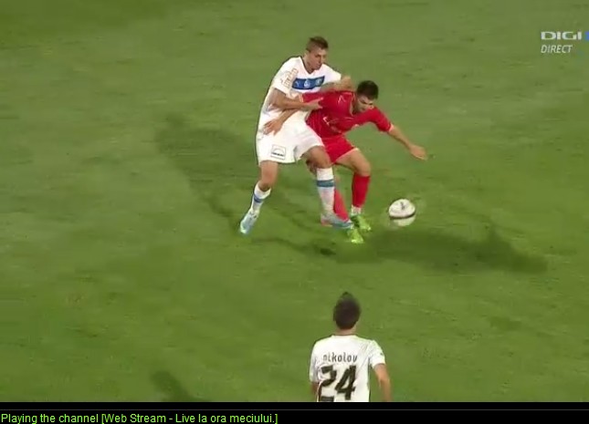 min.14 Cîrjan este blocat în ultimul moment, de fundaşii centrali ai gazdelor, la 12 metri de poarta adversă
