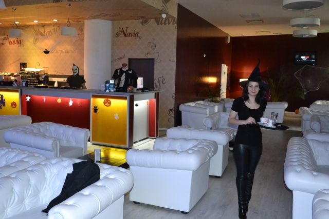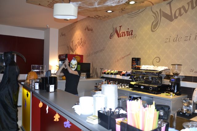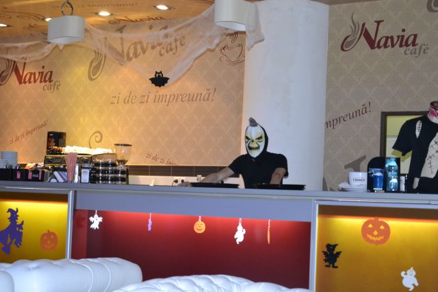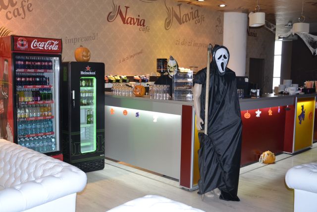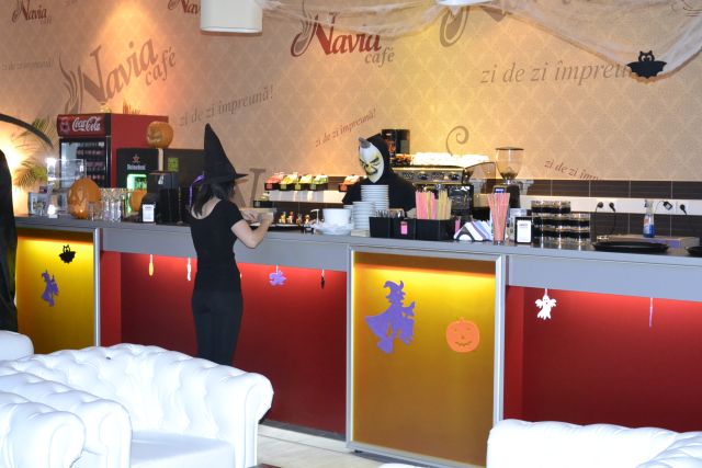 Cafeneaua Navia din Uvertura Mall din Botoșani oferă clienților săi un menu special, dar și o seară inedită, cu prilejul Halloween-ului. Atmosfera „de groază” este creată de un decor specific și întreținută de personal costumat specific acestei zile.