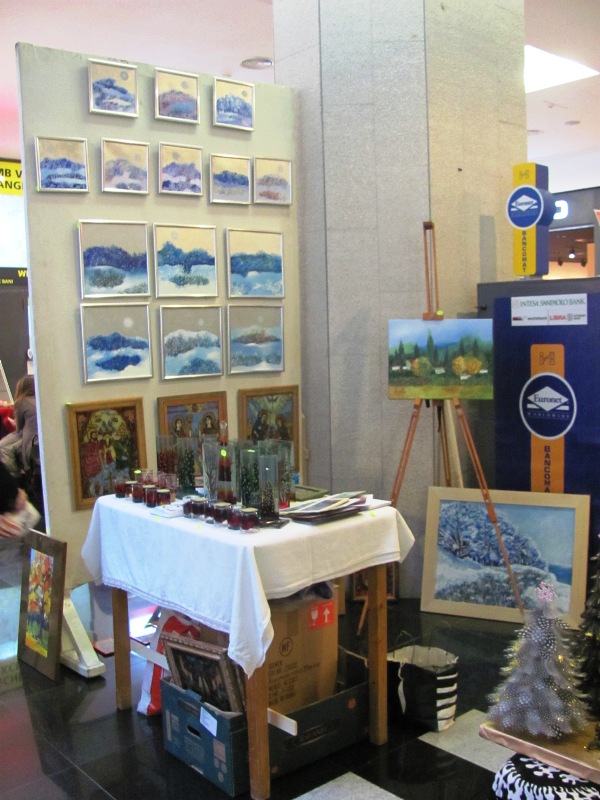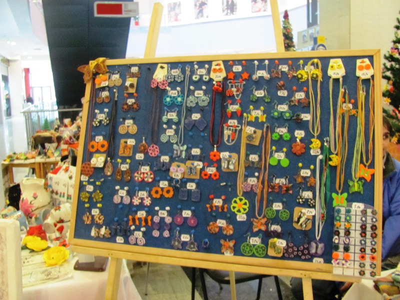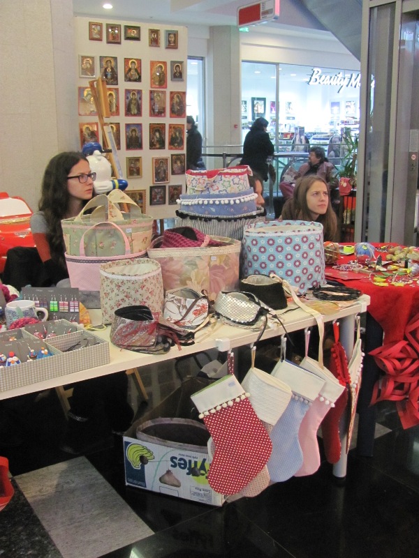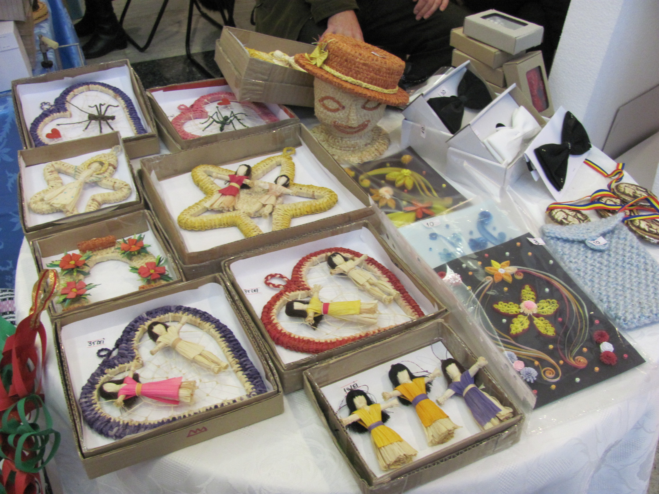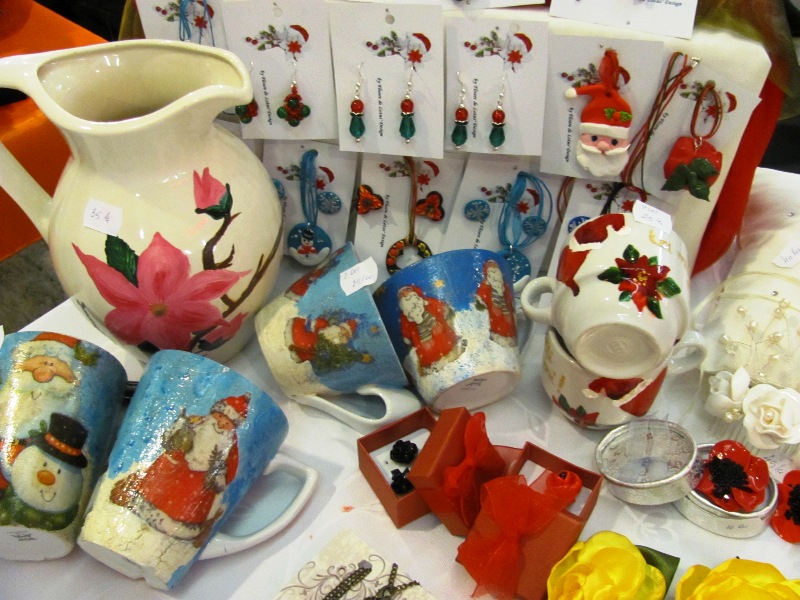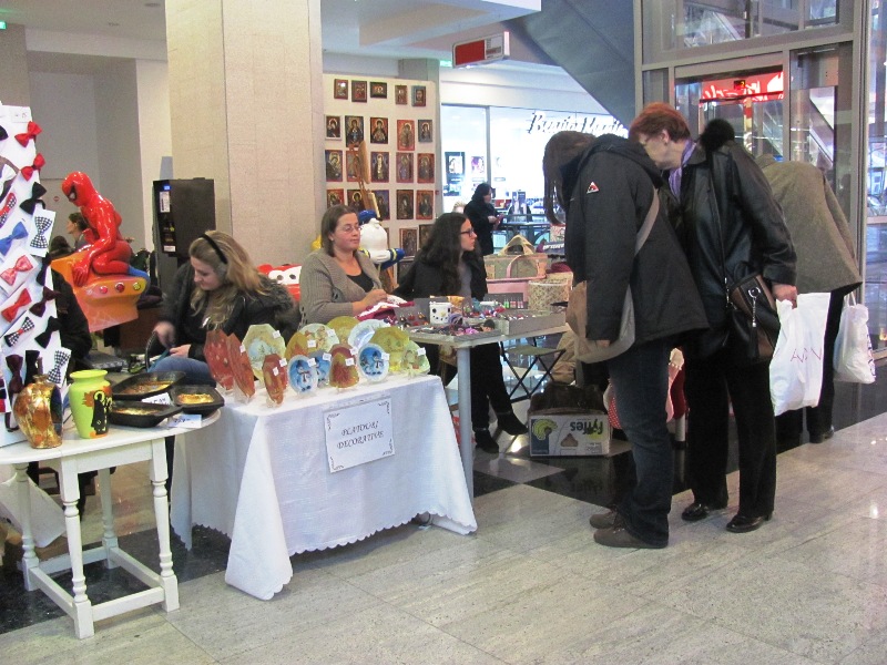 Podoabe de Crăciun, accesorii pentru vestimentaţie, bijuterii, decoraţiuni, miniaturi din lemn, împletituri din sfoară, tricotaje, picturi, papioane, păpuşi – toate acestea pot fi admirate şi cumpărate de la parterul complexului comercial unde se desfăşoară această primă ediţie a târgului.