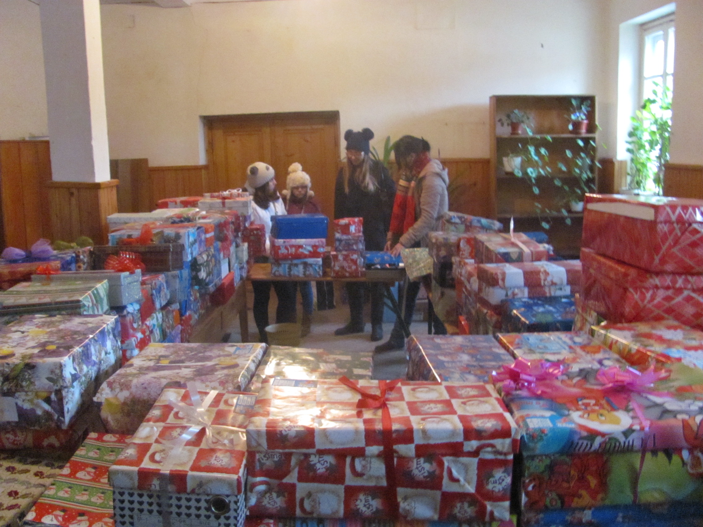 Sediul campaniei a fost la Sindicatul Invăţământului Preuniversitar, sala devenind practic neîncăpătoare pentru sutele de pachete. Cele mai multe sunt însă pentru fete din grupa de vârstă 5-9 ani, iar cele mai puţine pentru băieţi cu vârste între 15 şi 18 ani.