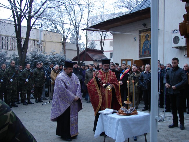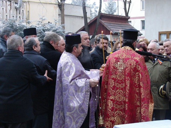 Cei doi preoti au tinut o slujba de pomenire a celor 15 eroi botosaneni care au murit in 1989, dupa care s-au depus coroane de flori la troita din incinta bisericii.