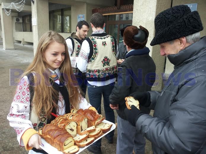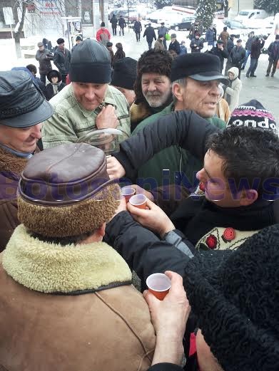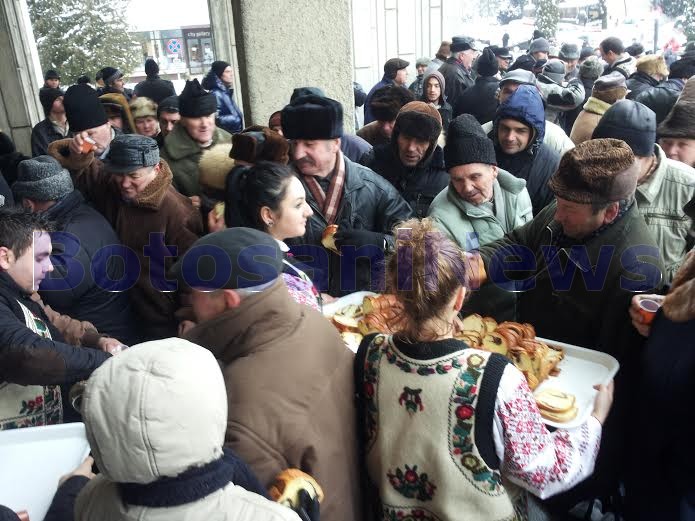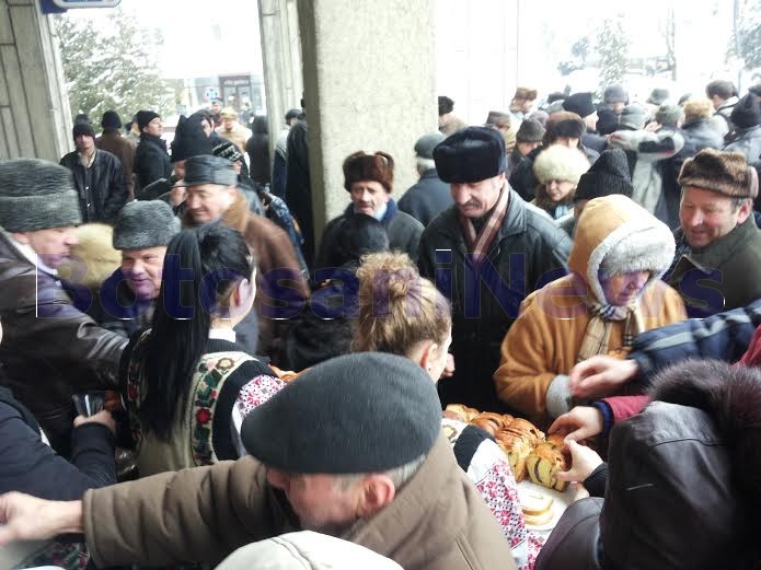 Peste 100 de oameni s-au înghesuit, vineri după-amiază, pentru a primi ţuică şi cozonac oferit de Consiliul Judeţean, cu prilejul Zilei Unirii.
