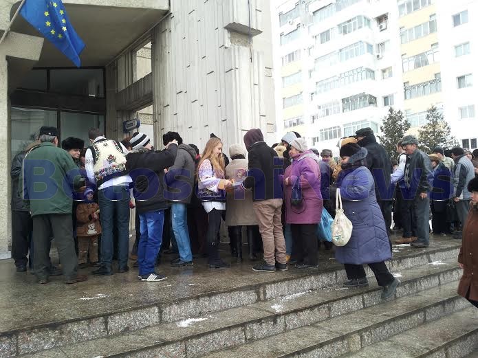 La un moment dat, angajaţii CJ au cerut sprijinul jandarmilor, din cauza îmbulzelii. În îmbulzeală, câţiva oameni au căzut.