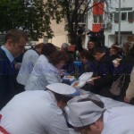 Credincioşii care au asistat la slujba de la Biserica Sfântul Gheorghe au format coadă şi la sarmalele oferite de municipalitate, cu prilejul hramului bisericii. 8 000 de sarmale, 100 de cozonaci şi 200 litri de vin au fost oferite botoşănenilor după slujbă.