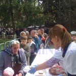 Jandarmii au asigurat ordinea pentru ca oamenii să nu se îmbrâncească. Imediat după încheierea slujbei, preotul paroh al Bisericii Sf.Gheorghe a sfinţit bucatele. Şi primarul Ovidiu Portariuc a fost prezent la faţa locului, pentru a vedea dacă lucrurile se desfăşoară fără incidente.