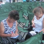 Mai degrabă, botoșănenii s-au înghesuit la chioșcurile din dreapta scaunelor, aparținând susținătorilor caravanei, pentru a primi taloane pe care să le completeze pentru a cîștiga premiile puse în joc: un telefon mobil, cărți de la Nemira, produse de la Persil și Pur etc.