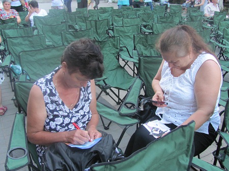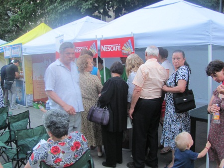Mai degrabă, botoșănenii s-au înghesuit la chioșcurile din dreapta scaunelor, aparținând susținătorilor caravanei, pentru a primi taloane pe care să le completeze pentru a cîștiga premiile puse în joc: un telefon mobil, cărți de la Nemira, produse de la Persil și Pur etc.
