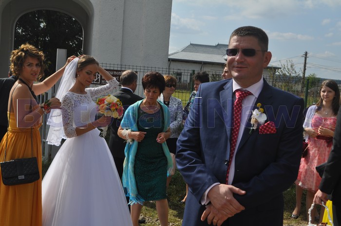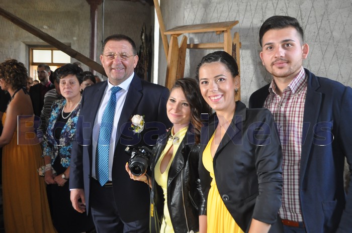 Slujba religioasă a fost oficiată de trei preoţi, la ceremonie participând zeci de rude şi prieteni ai mirilor, dar şi socrilor.