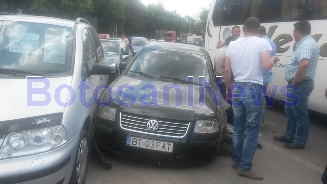 Accident cu trei mașini avariate în fața intrării la Hotelul Premier. Un șofer de 33 de ani, care conducea un Volkswagen Passat, a intrat, marți după-amiază, într-o depășire în zonă interzisă, cu dublă linie continuă, lovind o mașină de teren, o Toyota Land Cruiser, după care s-a oprit într-o altă mașină aflată la vânzare pe partea dreaptă a drumului.