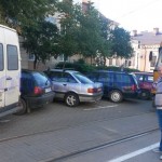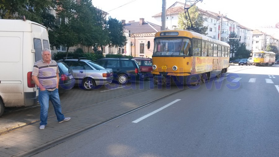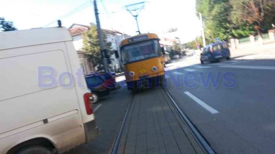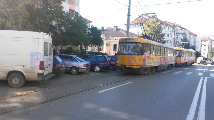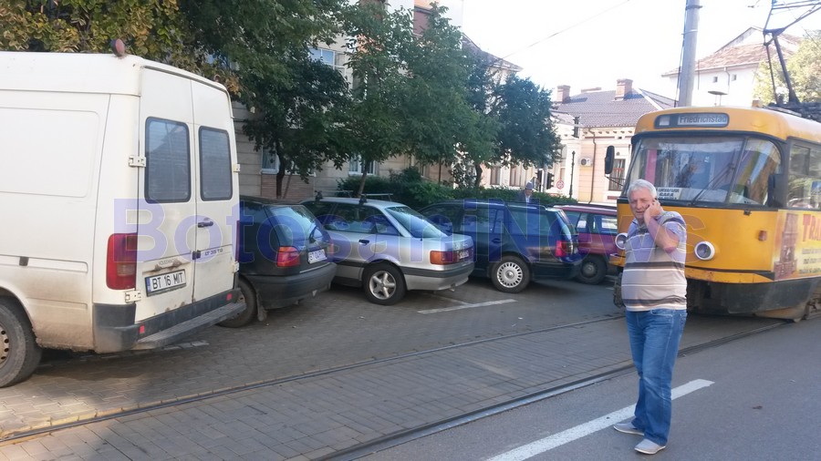 O intersecție din municipiul Botoșani a fost blocată, luni, din cauza unui șofer nesimțit. Individul și-a parcat autoutilitara, un VW LT, în zona Bisericii Sfântul Gheorghe, lăsând o parte din ea chiar pe linia de tramvai.
