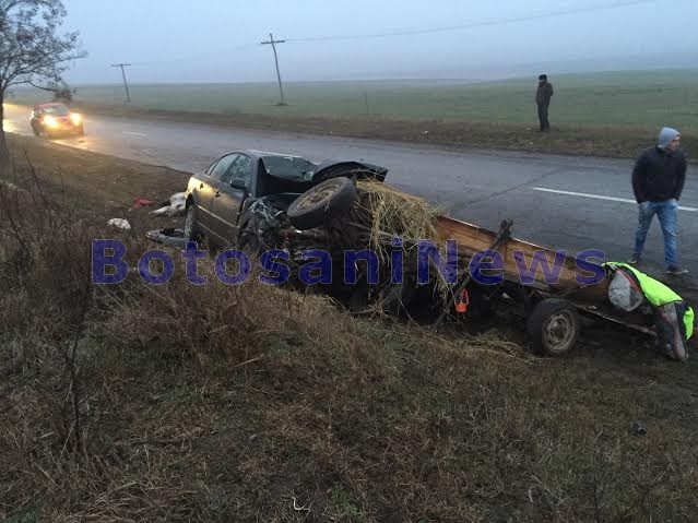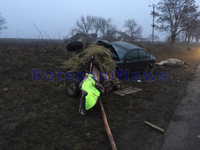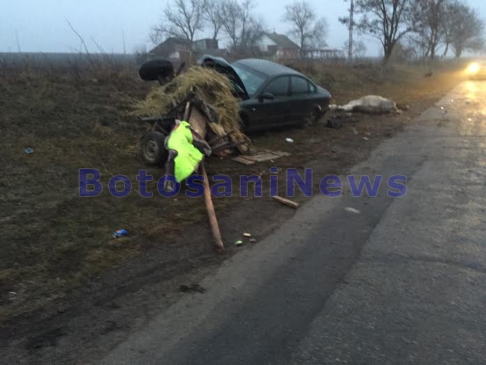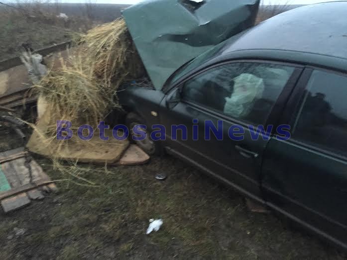 Un tânăr de 29 de ani, din Darabani, care se îndrepta spre casă la volanul unui autoturism VW Passat, a lovit în plin o căruță nesemnalizată.