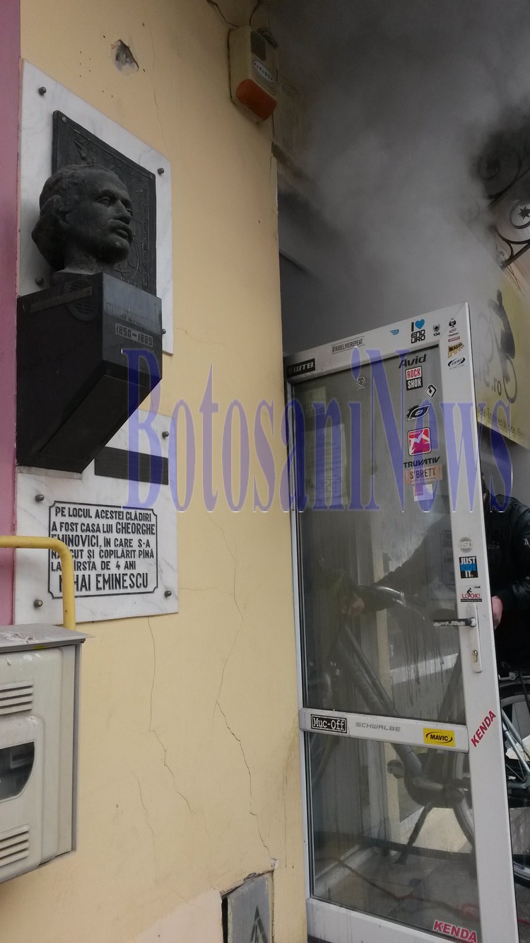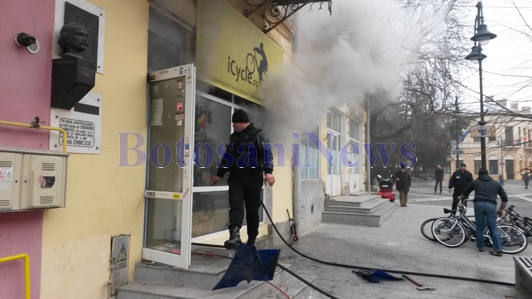 Un puternic incendiu a afectat, sâmbătă dimineaţă, un magazin din Centrul Vechi al municipiului Botoşani. Este vorba de un magazin de biciclete şi service pentru biciclete aflat în imediata vecinătate a Bisericii Uspenia. Fumul puternic putea fi observat de la distanţă.
