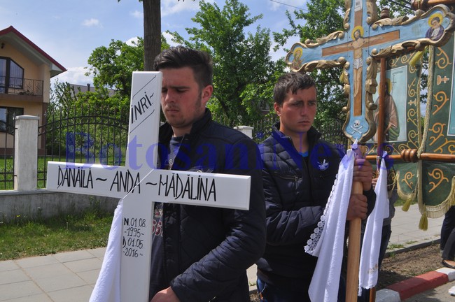 Părinţii, rudele, prietenii, vecinii, cunoscuţii, dar şi simplii locuitori ai Darabaniului care au aflat de tragedie, au participat la înmormântare, însoţind cortegiul funerar pe întreg traseul, de acasă la biserică şi de la biserică la cimitir.