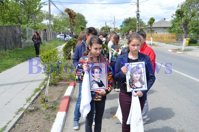 Două fotografii ale Andei, purtate pe braţe de două adolescente, au deschis cortegiul funerar, care a parcurs întreg centrul oraşului Darabani. Zeci de coroane au fost făcut parte şi ele din coloană, purtând cu ele omagiile prietenilor.